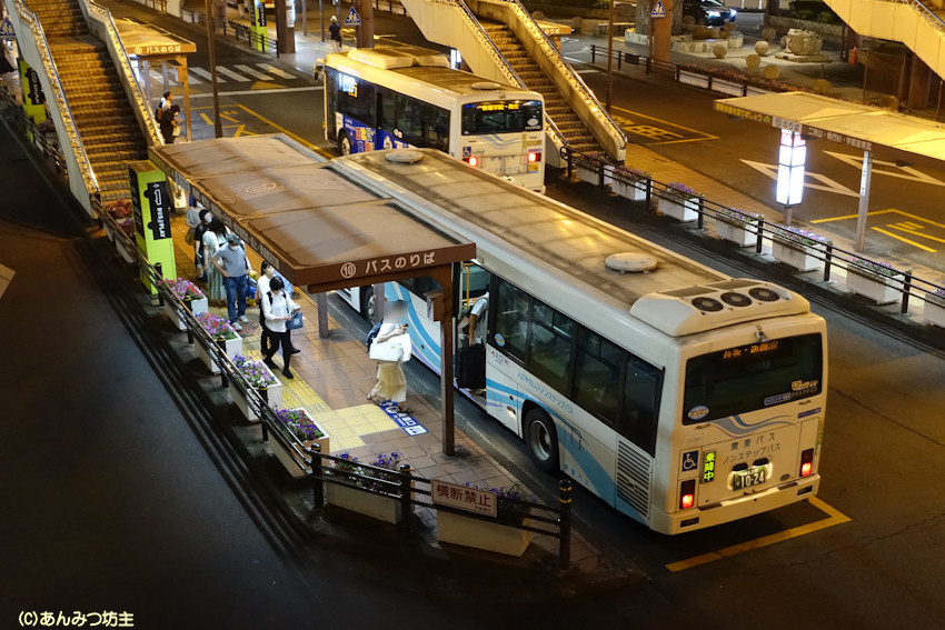 駅前バス乗り場では人々が列を作ってバスに乗り込んでいきます。梅雨時らしくない晴天の暑い一日でしたから、冷房の効いたバスで帰宅できるのはありがたいです。